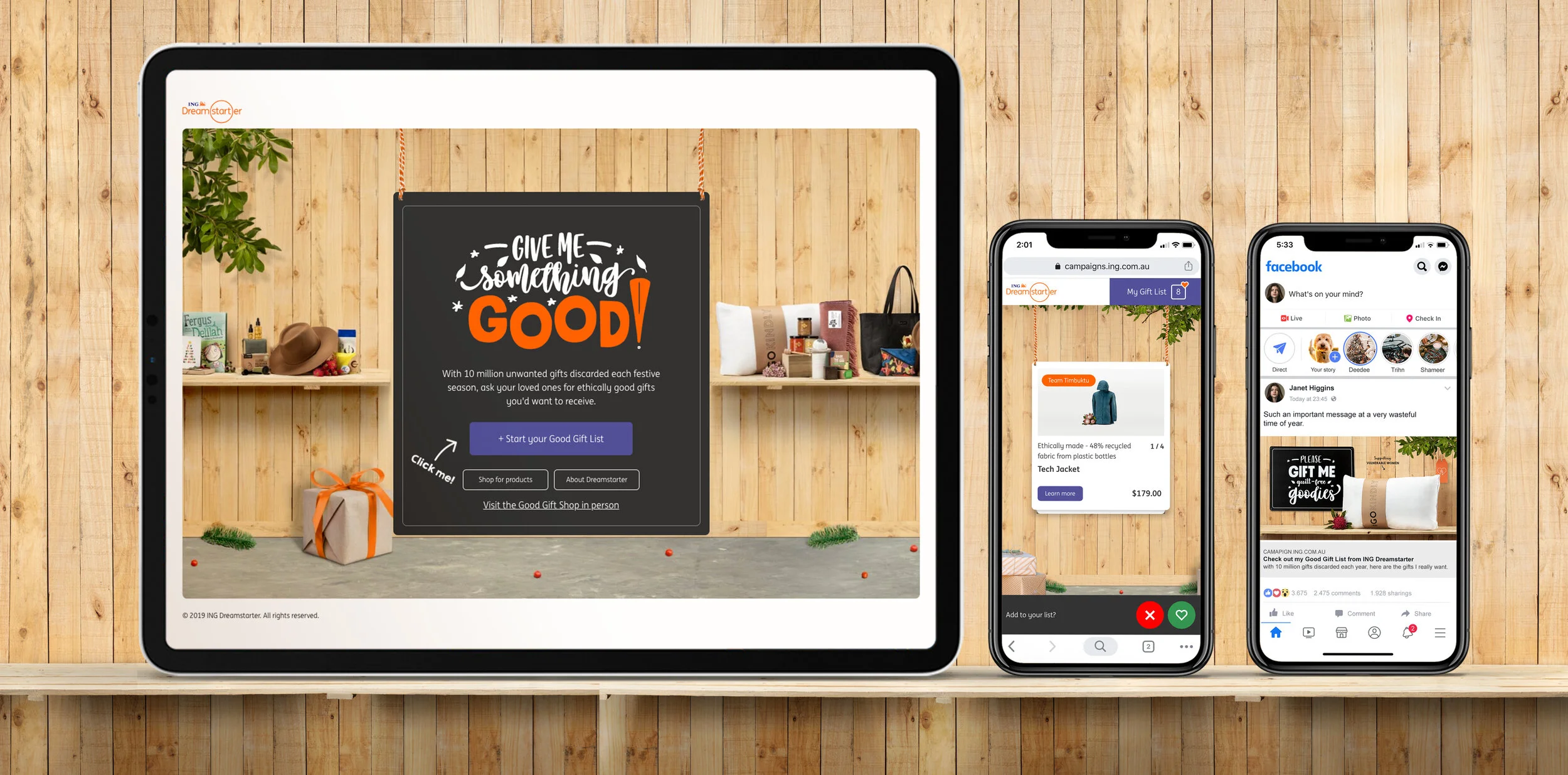 ING Dreamstarter, the bank’s impact initiative, supports Australian social entrepreneurs whose products create positive change in the world. So when we unearthed the startling statistic that Aussie’s receive 10 million unwanted gifts each Christmas, we called in the experts from the frontline of festive waste and asked them to make a timely passionate plea to the nation to demand ethically good gifts from ING Dreamstarter.